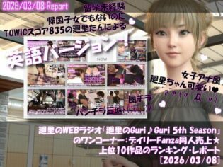 3DCG 【レビュー】〖Libido-Labo〗『【▲20】英語★廻里の自撮りWEBラジオ『廻里のGuriGuri(グリグリ)5thシーズン』のワンコーナー:デイリーFanza同人売上★上位10作品のランキング・レポート[2026/03/08]』(d_743587)2026-03-11発売の動画1本エロ漫画を安く読む方法
